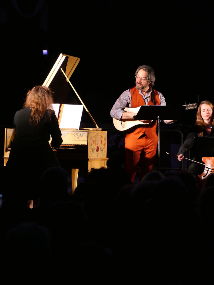 ❤️ L’Ensemble Il Caravaggio constitue le groupe des trois musiciens présents aujourd’hui : clavecin, théorbe et viole de gambe.