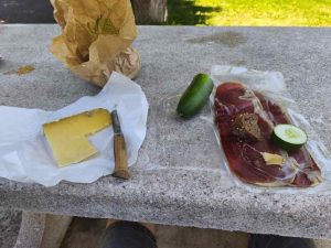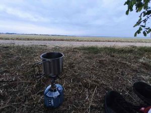 Malgré tout, cela demeure bien une épreuve physique. Chargé d’un sac de 11 kg, des douleurs se réveillent. D’abord ce fut l’épaule droite qui se manifesta par le poids du sac durant les 4 premiers jours, puis vint le tour du genou droit sur les jours suivants, cette douleur migra ensuite vers la cheville droite avant de terminer sur la cheville gauche. Je me pose encore la question si tous les membres de mon corps n’essayaient pas de manifester leur présence. Une belle expérience de pleine conscience. Je ne recommande pas les chaussures de sécurité pour faire de la marche.