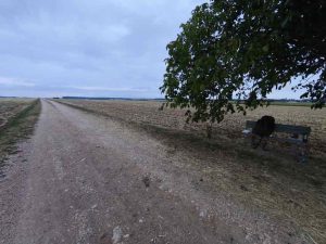 Je suis parti de la Basilique de Saint-Denis, à quelques pas de mon lieu d’habitation comme il est coutume de faire pour un pèlerinage en direction de Saint-Jacques-de-Compostelle. Je me suis rendu par la force de mes jambes jusque Poitiers. Cela m’a pris 15 jours avec une distance de marche quotidienne oscillant entre 20 et 40 km environ. J’estime la distance totale parcourue à 450 km pour une moyenne quotidienne de 30 km. À adapter en fonction de l’état de forme de chacun.