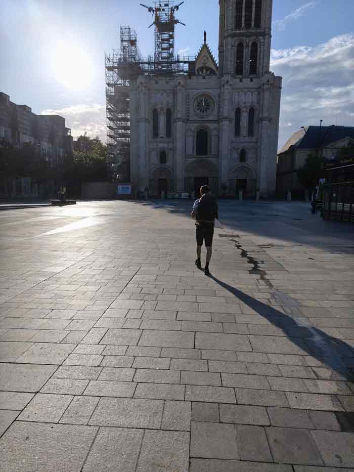Je suis parti de la Basilique de Saint-Denis, à quelques pas de mon lieu d’habitation comme il est coutume de faire pour un pèlerinage en direction de Saint-Jacques-de-Compostelle. Je me suis rendu par la force de mes jambes jusque Poitiers. Cela m’a pris 15 jours avec une distance de marche quotidienne oscillant entre 20 et 40 km environ. J’estime la distance totale parcourue à 450 km pour une moyenne quotidienne de 30 km. À adapter en fonction de l’état de forme de chacun.