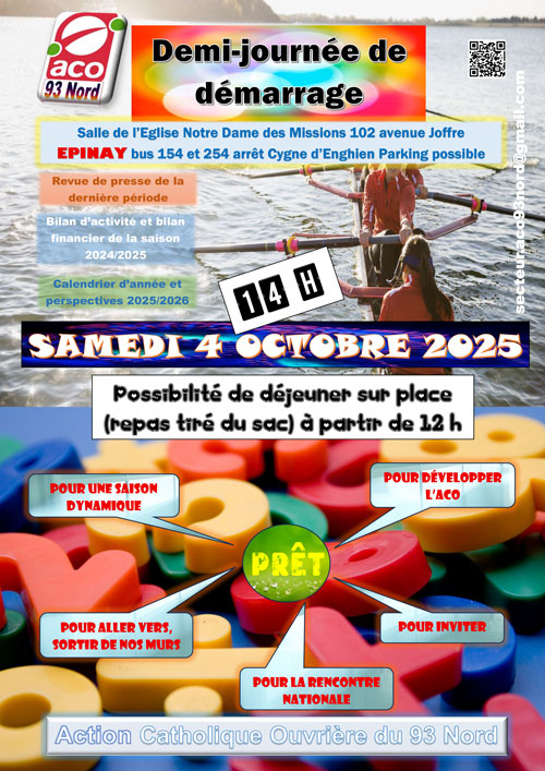 ACTION CATHOLIQUE OUVRIÈRE (ACO) : lancement d’année pour le 93 Nord à l’église Notre-Dame-des-Missions à Epinay, le samedi 4 octobre à 14h00