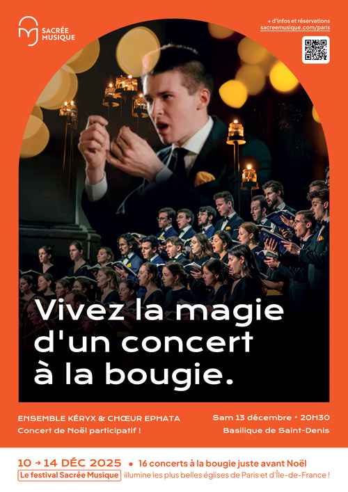Réservez vos places ! Dans le cadre du Festival Sacrée musique, un splendide concert, éclairé par des centaines de bougies. Les paroissiens bénéficient d’un tarif réduit, avec le code promo spécial : FESTIVAL15. Lieu : Basilique Cathédrale. Date : samedi 13 décembre 2025, 20h30