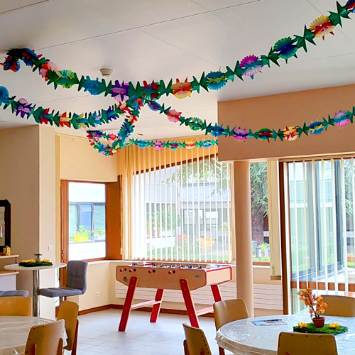 Il y a aussi tous ces panneaux de liège que j’ai recouverts de tissu pour les rendre plus joyeux. Et puis, surtout, je ne peux pas finir cet article sans parler de Marie-Noëlle (animatrice salariée chez les Petites Sœurs) qui a œuvré dans la salle des fêtes avec la contribution des Guides de France le dimanche.
