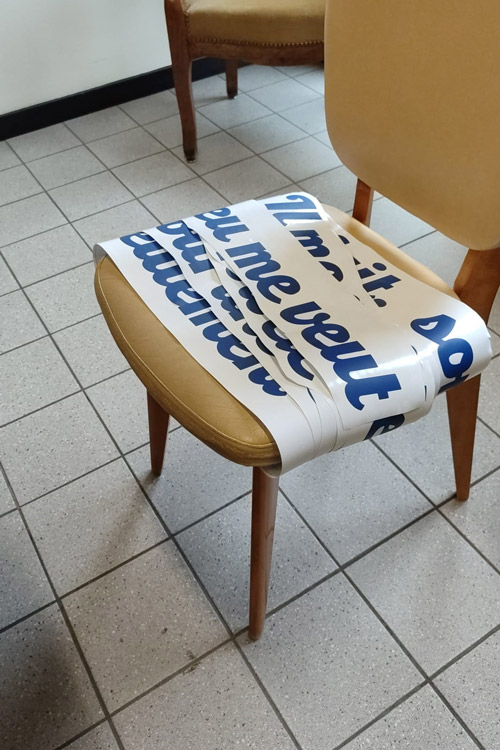 (Je ne vous ai pas encore parlé d’un homme pourtant essentiel à mes préparations…) Avec monsieur J., nous mettons la bâche en place sur le portail. Elle est du plus bel effet… et surtout, elle indique à tous les passants ce qu’il se passe derrière ces murs, ces grilles. Parce que, dans le quartier, même certains riverains ne savent pas… Les voici donc un peu mieux renseignés avec cet affichage. Ici, il y a de vieilles gens et des Petites Sœurs. Comme il n’y a pas de date sur la bâche, j’espère qu’elle restera en place pendant quelques semaines. Pour que leur congrégation ait un peu plus de visibilité ; qu’elle rayonne.