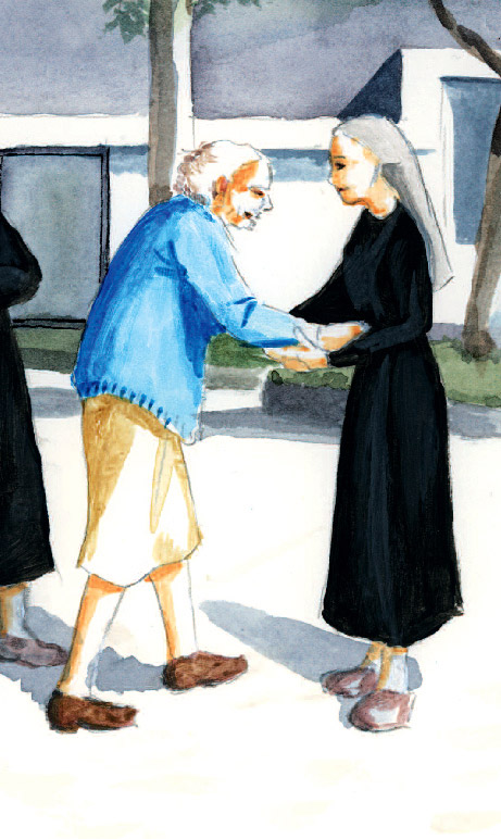 La vieillesse est une partie qui dure presqu’un tiers de notre vie… C’est un moment où le temps doit sans doute prendre une autre dimension. Un temps où notre corps ne répond plus comme nous le connaissions auparavant. Un temps où il faut prendre le temps ; celui de prendre soin de soi. Penser aux personnes âgées de Ma Maison, c’est me rappeler que l’univers dans lequel elles vivent est une Maison voulue et créée pour leur amener protection. Dans la prière du quotidien, les Petites Sœurs œuvrent pour que les vieillards, que nous devenons tous, se sentent écoutés, accompagnés, choyés. Je les vois faire les Petites Sœurs avec leurs vieillards. Je les vois bien… toutes si prises par l’ampleur de la tâche de la gestion de leur si grande maison… Je les vois de leur pas pressé (certaines ont même un fauteuil roulant que j’appelle voiture). Elles ne prennent pas le temps de la contemplation dans ces moments où je les vois aller et venir. Elles sont souvent pressées… Et pourtant… Il suffira qu’un de leurs résidents croise leur chemin pour qu’elles s’arrêtent pour prendre le temps, demander si tout va bien pour lui, pour elle. Comme simple témoin, je peux dire que l’œuvre de Jeanne Jugan, a toujours cours, ici.