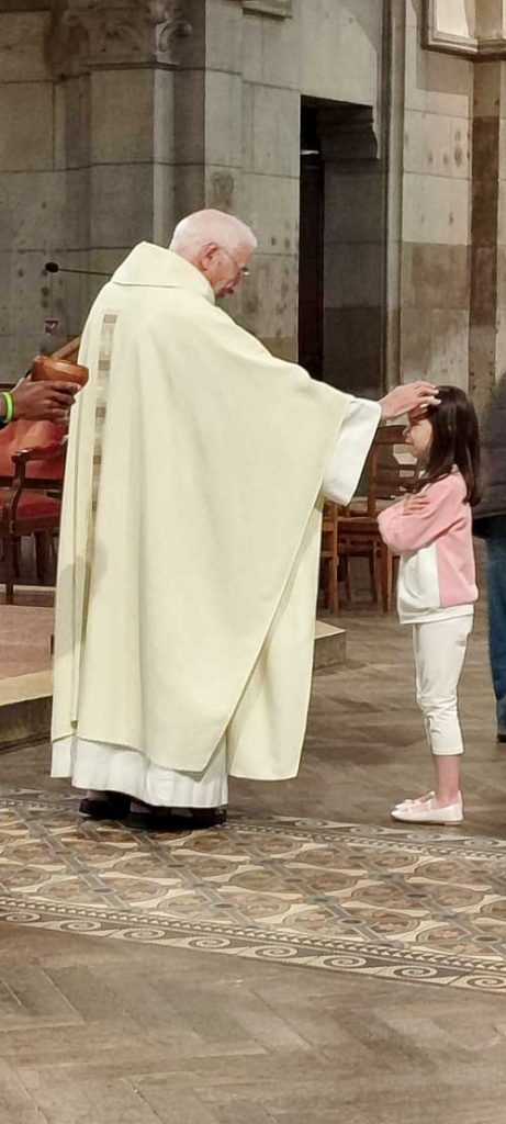 31 mai 2025, anniversaire des 50 ans de sacerdoce du père Claude Chavet sj. Temps de communion : première bénédiction d’enfant.